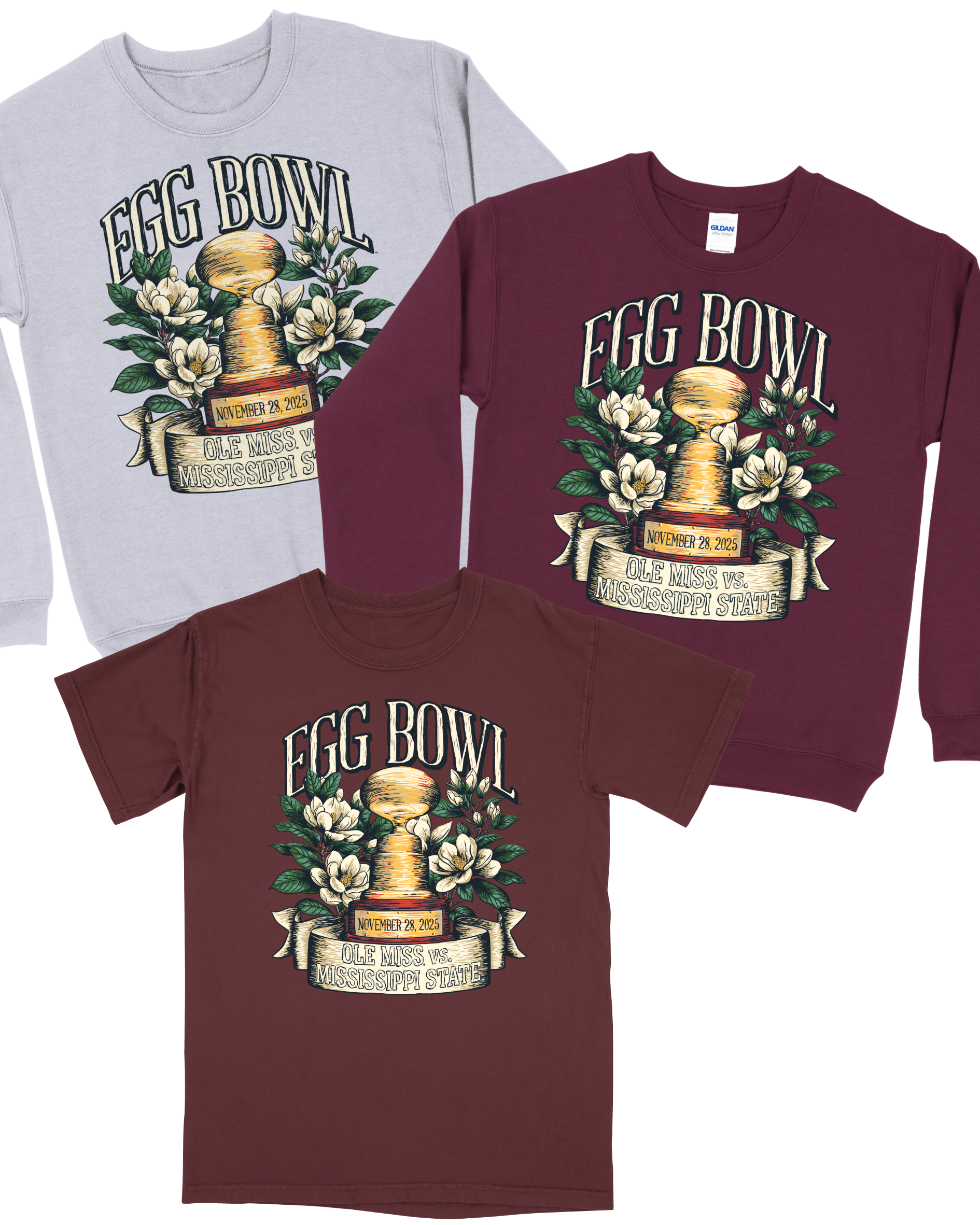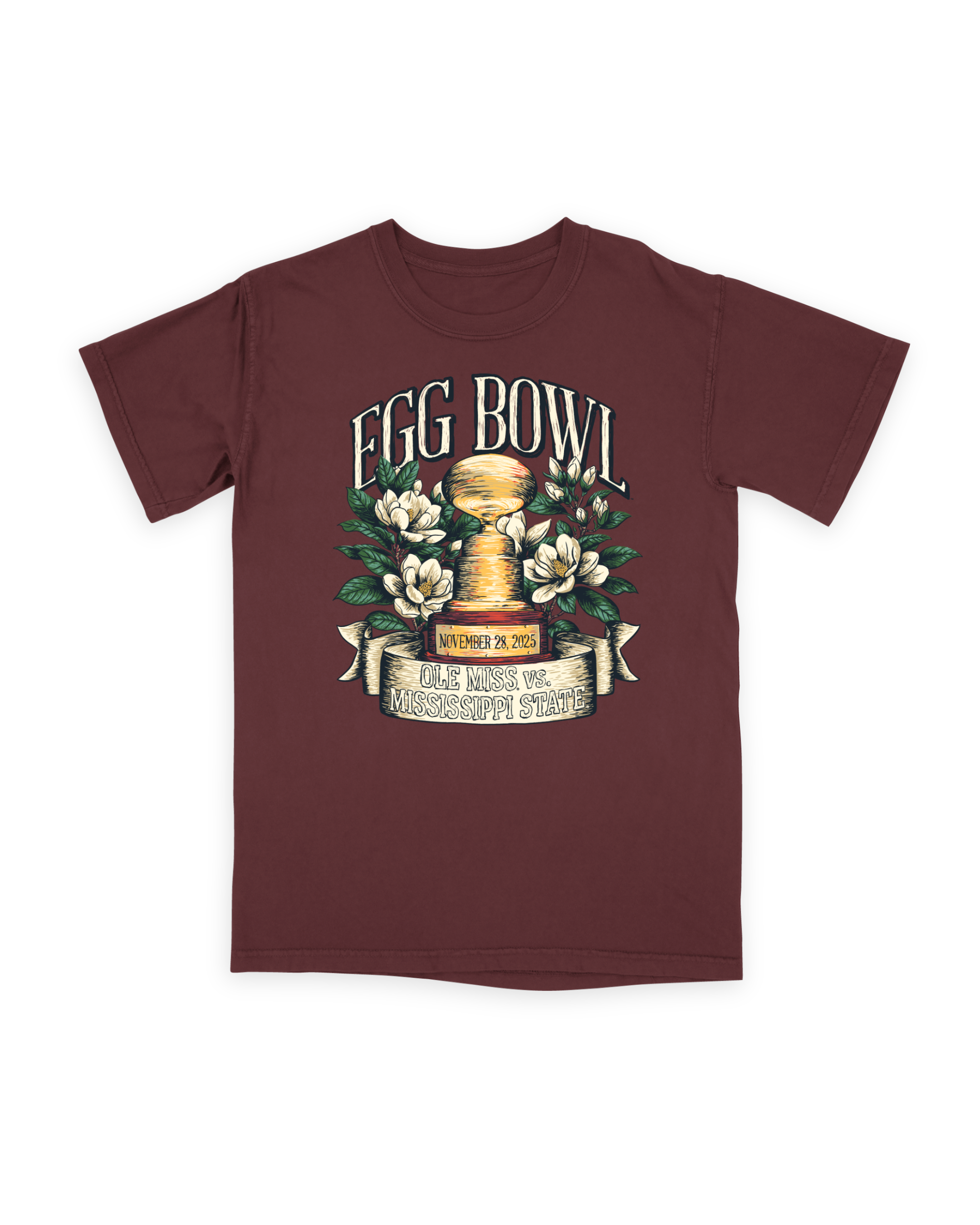 '25 Magnolia Egg Bowl Trophy - Maroon Tee / S is backordered and will ship as soon as it is back in stock.