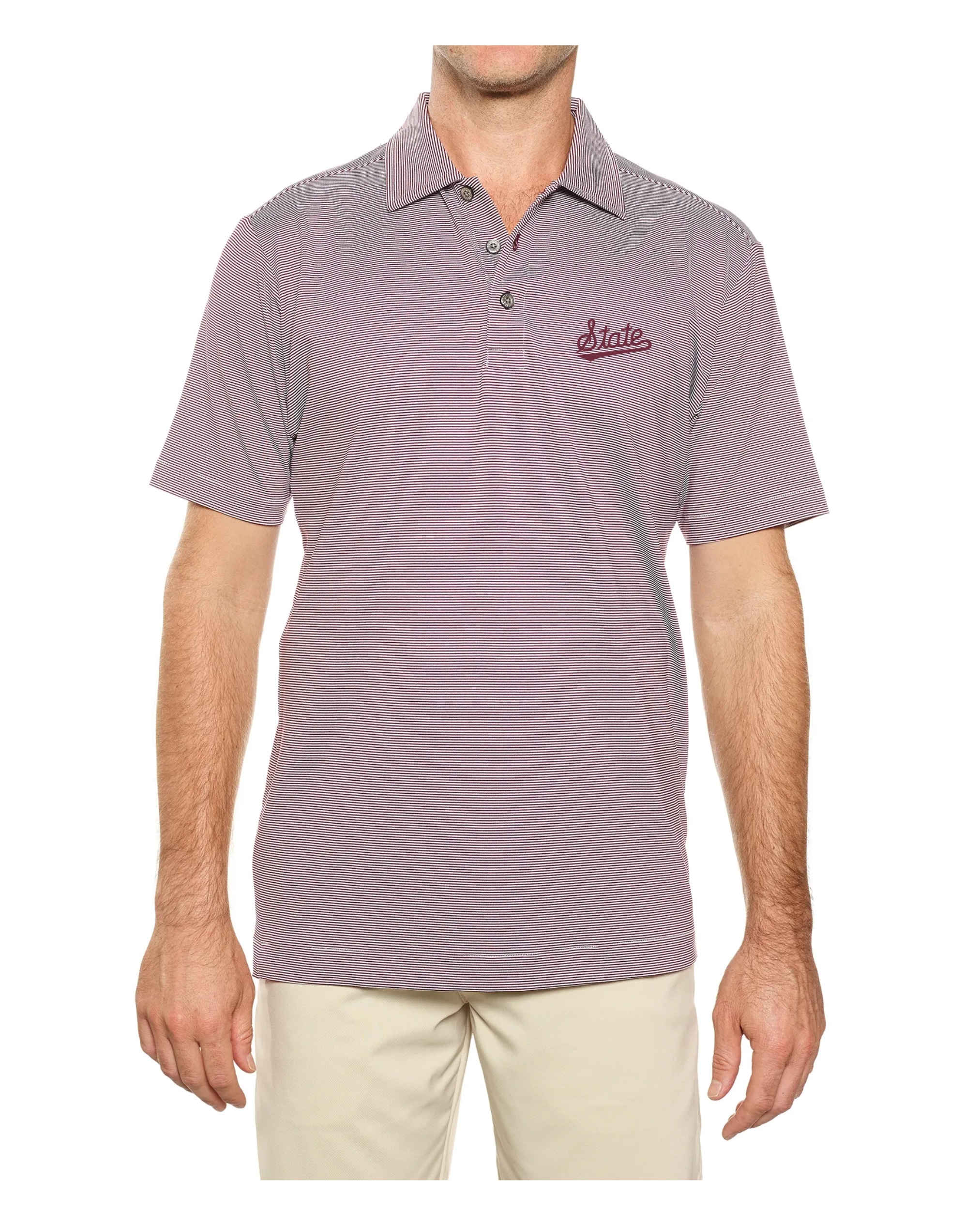 Get up and go, in our new luxury performance stripe polo. Leisure, travel, work or play, we’ve engineered the perfect blend of comfort, style and function for any type of day. Featuring our new Windsor mini-feeder stripe fabric, allows for a natural hand and drape. Casual styling for the stripes to make their play! 90% Micro Polyester, 10% Spandex 5.3 oz.