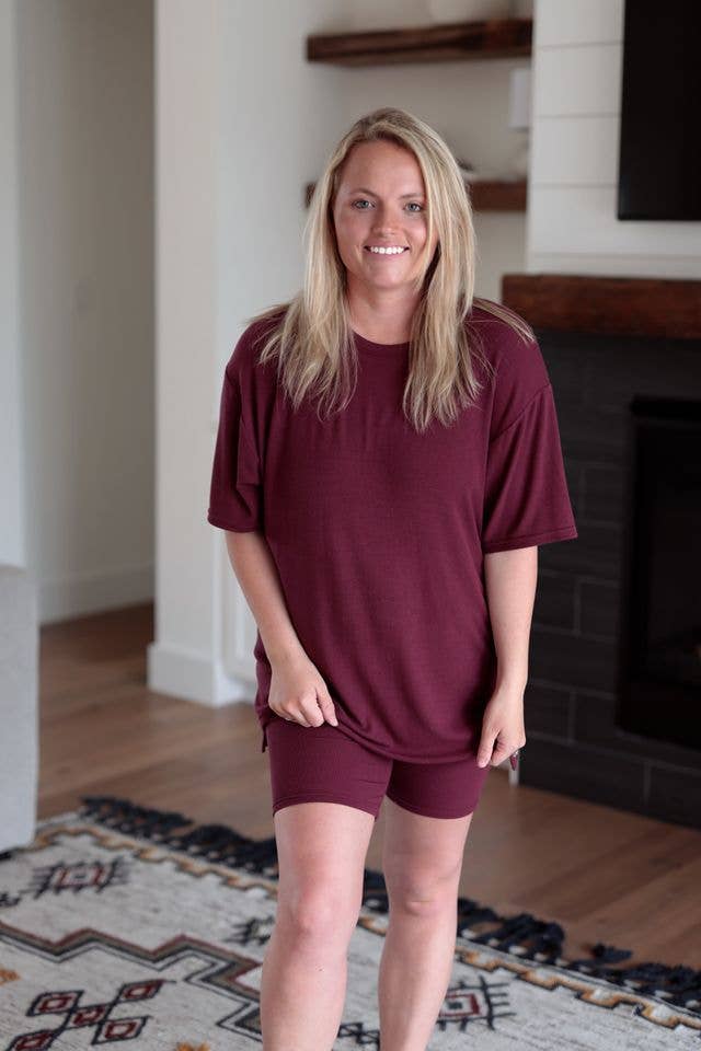 Maroon 24/7 Ribbed Set - S is backordered and will ship as soon as it is back in stock.