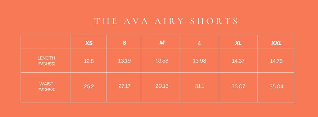 With a gathered waist band, the Ava Airy shorts fit true to size and are slightly high-waisted. Includes a woven label on the front center of the waist band.