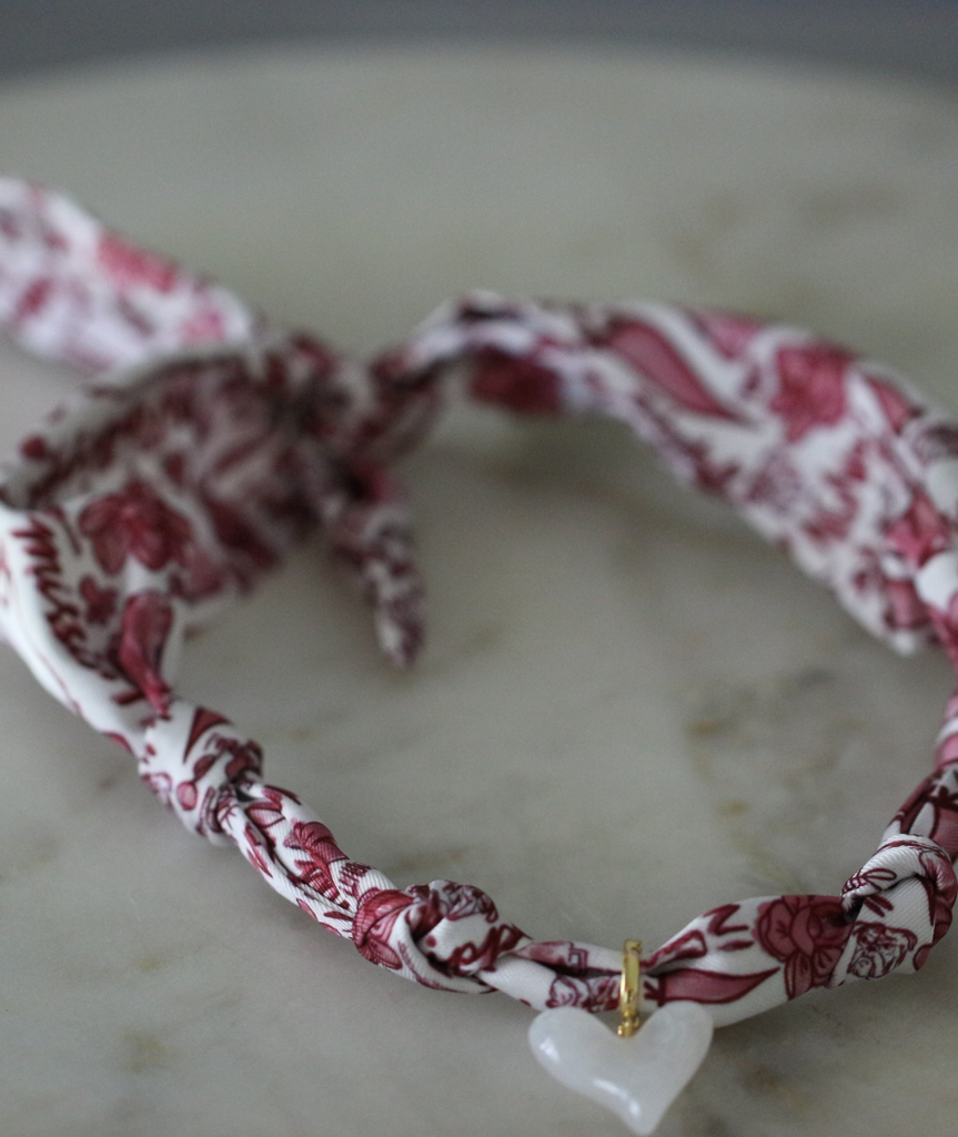 Wrap yourself in team spirit with this scarf-inspired necklace, designed for game days and beyond. The silky maroon-and-white patterned fabric knots gracefully around your neck, finished with a polished heart charm for a touch of feminine flair. Perfect for tailgates, stadium stands, or adding a spirited accent to your everyday look, this necklace blends Southern charm with playful elegance.