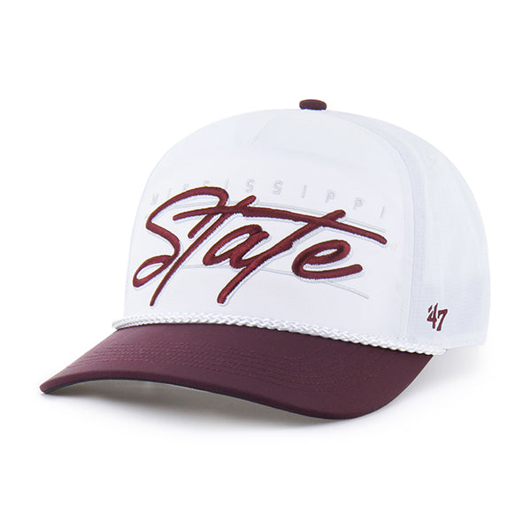 The brrr° Fairway ’47 HITCH RF is a relaxed-fit snapback made with brrr° nylon ripstop for continuous cooling featuring a raised embroidered script design, a braided visor rope, a woven label team logo on the back, and a snap closure.
