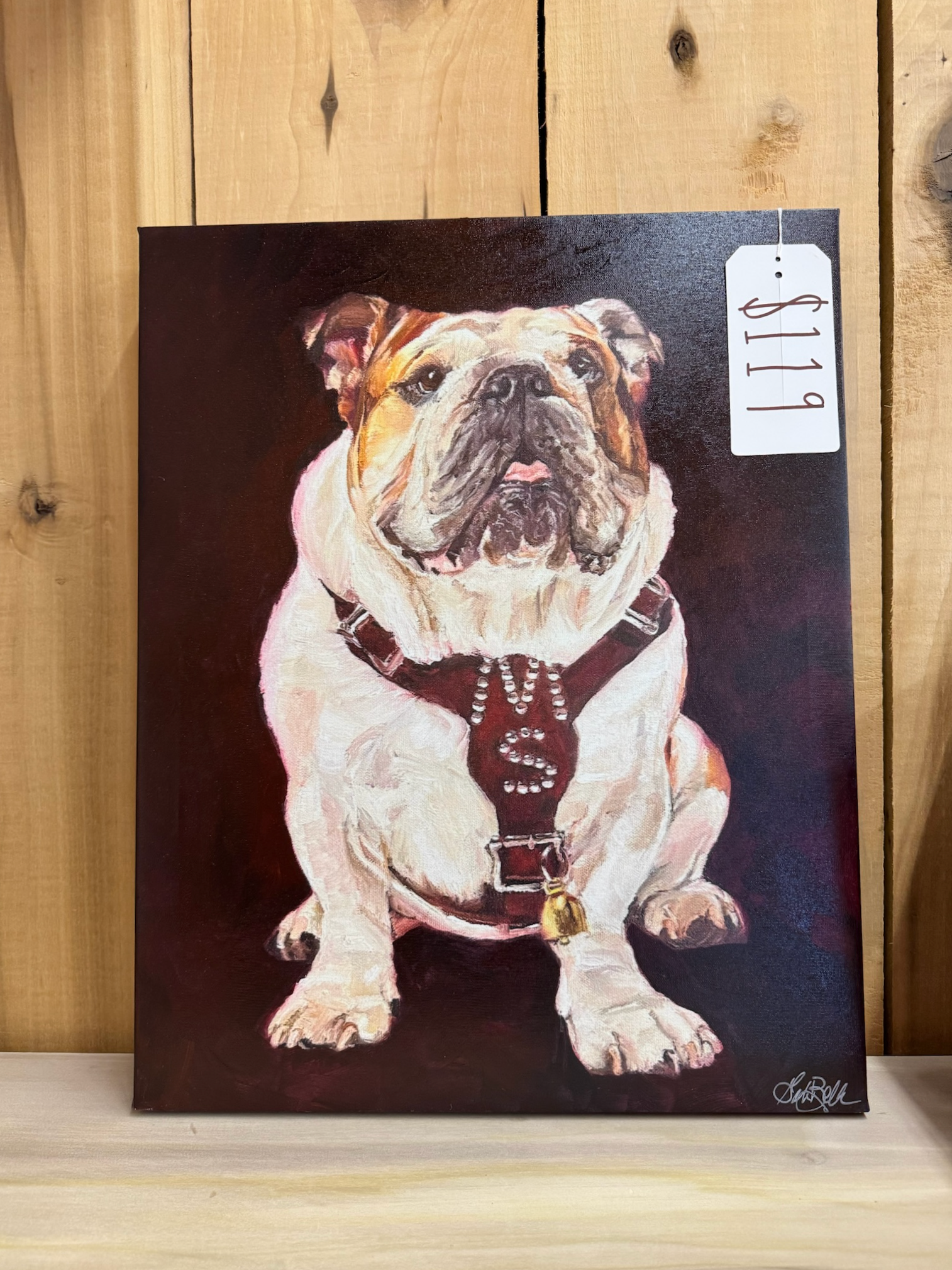 Add a splash of local pride with the Grand Dak Canvas Print! This 16x20in mirror-wrapped canvas, a sturdy .75 inch thick, is officially licensed and crafted right here in Starkville. Perfect for brightening up your office, home, or game day condo, it brings a playful vibe wherever it hangs. Celebrate your favorite team with style and local flair! Originally painted by the talented Starkville local, Gale Belk.