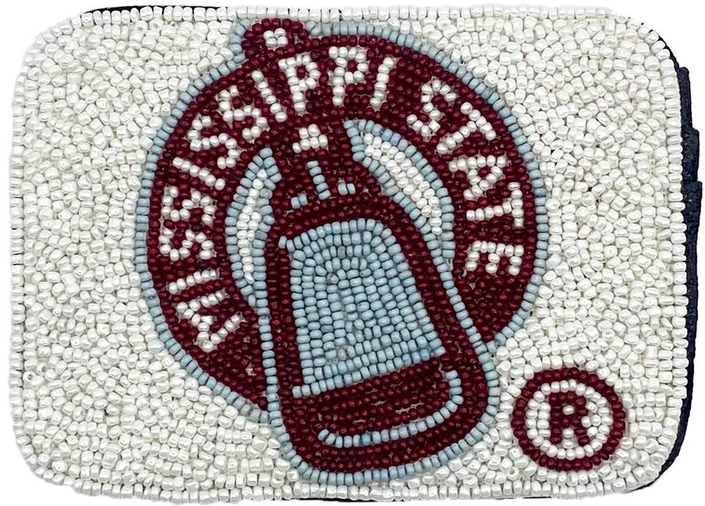 Carry your essentials in style with the Mississippi State Beaded Card Holder. This playful accessory features three convenient pockets to keep your cards organized, all wrapped in a chic white design accented by a grey and maroon cowbell pattern. Perfect for showing off your school spirit with a fun twist!