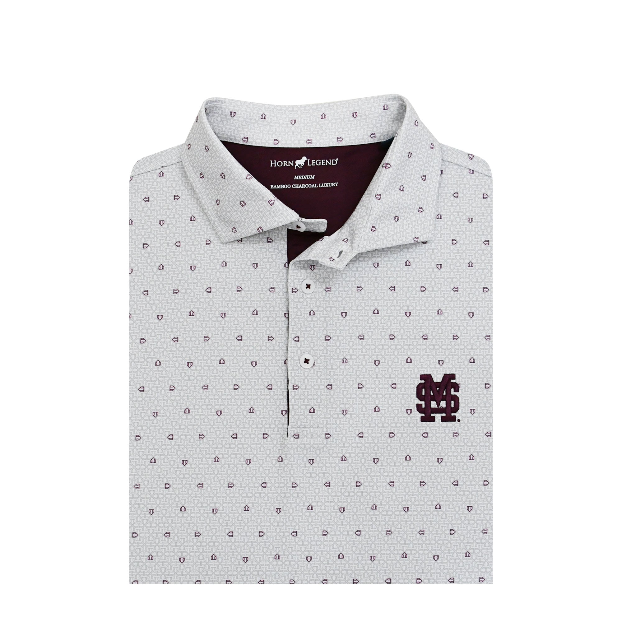 Step out in style and showcase your Mississippi State pride with the Baseball MS Home Plate. Featuring a unique all-over "Home Plate" print and the iconic "Baseball MS" embroidered on the chest, this polo is the perfect combination of bold design and timeless team spirit. Expertly tailored with lightweight, breathable fabric, it offers unmatched comfort for game days, casual outings, or business-casual events. The maroon buttons and accents add a touch of refinement, while the classic collar and placket keep the look polished and versatile. Elevate your Bulldog fandom with the Bulldog Silhouette Home Plate, designed for those who appreciate quality and love to rep their team in style.