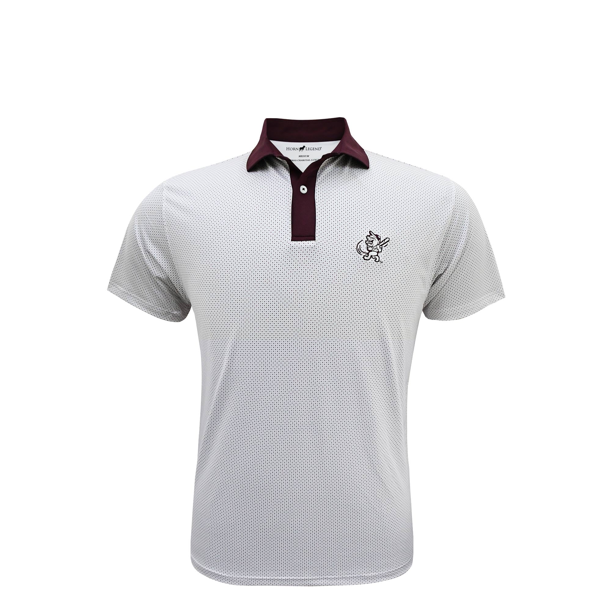 Step out in style and showcase your Mississippi State pride with the Swinging Bully logo polo. Featuring a unique all-over print and the iconic embroidered on the chest, this polo is the perfect combination of bold design and timeless team spirit. Expertly tailored with lightweight, breathable fabric, it offers unmatched comfort for game days, casual outings, or business-casual events. The maroon buttons and accents add a touch of refinement, while the classic collar and placket keep the look polished and versatile. Elevate your Bulldog fandom designed for those who appreciate quality and love to rep their team in style.