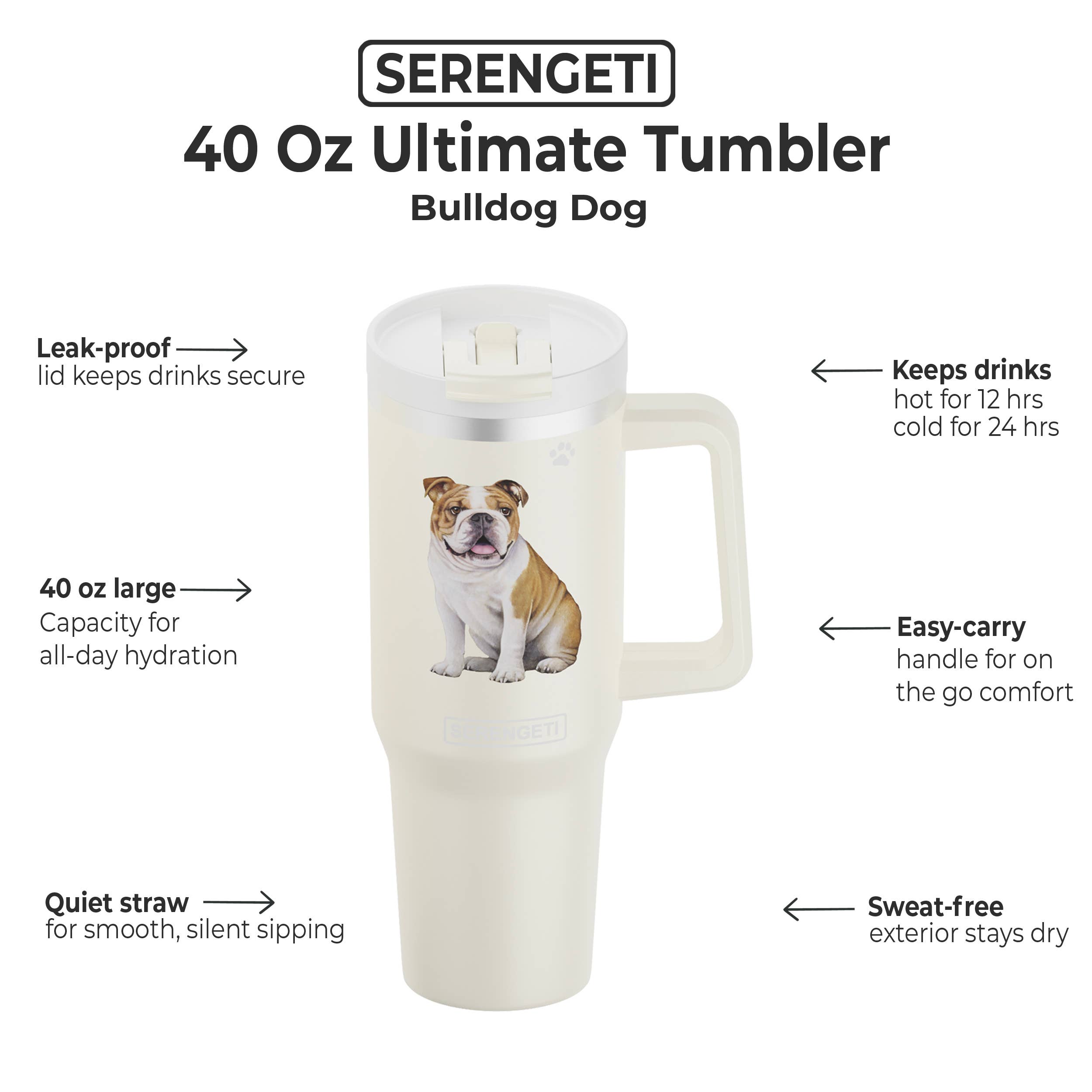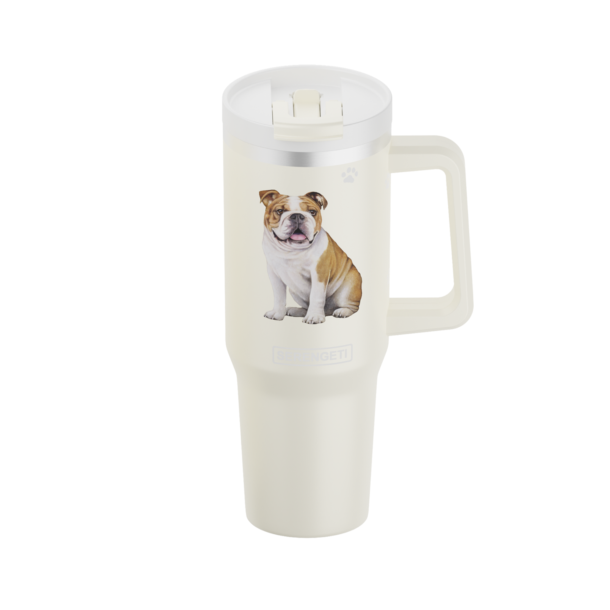 Enjoy your favorite drinks on the go with Bulldog 40 Oz insulated Tumbler with with straw and Leak-Proof Lid for Pet Lovers.