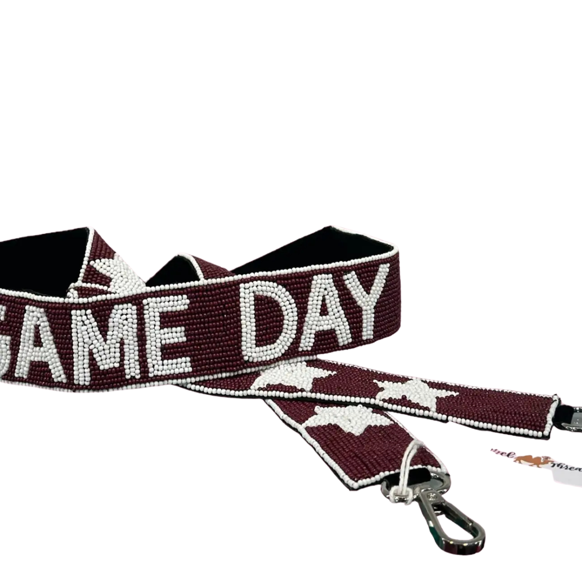 Stand out from the crowd with our Game Day Beaded Bag Strap! Perfect for changing up your clear bag game on game day. The maroon color with white stars adds a fun and playful touch. (Plus, it's stadium approved!)