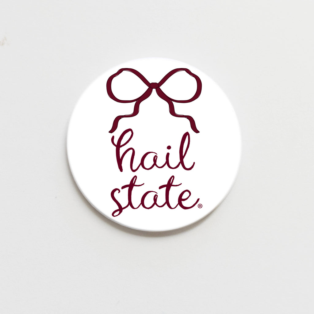 Show off your bulldog pride with this charming 2.25-inch pin-back button featuring a playful bow design. Perfect for adding a touch of coquette flair to any outfit, it’s a fun and stylish way to celebrate Mississippi State University spirit wherever you go.