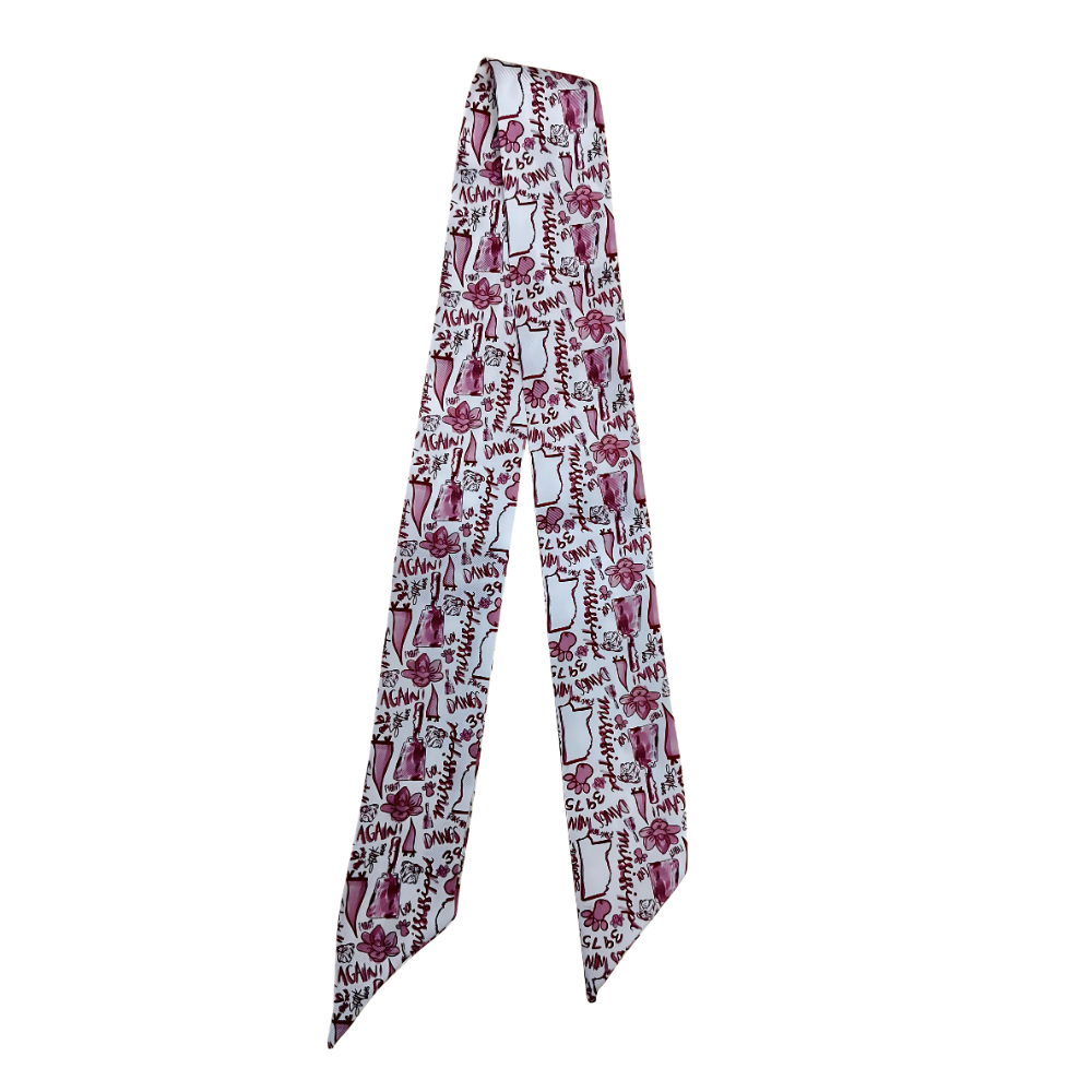 Celebrate game day in style with the Starkville Tailgate Scarf. Featuring a spirited maroon and white design with nods to Mississippi traditions, tailgating, and Bulldog pride, this scarf is perfect for showing your school spirit. Wear it as a neck scarf, tie it on your bag, or style it in your hair for a fun and versatile accessory that’s ready for any gameday event.